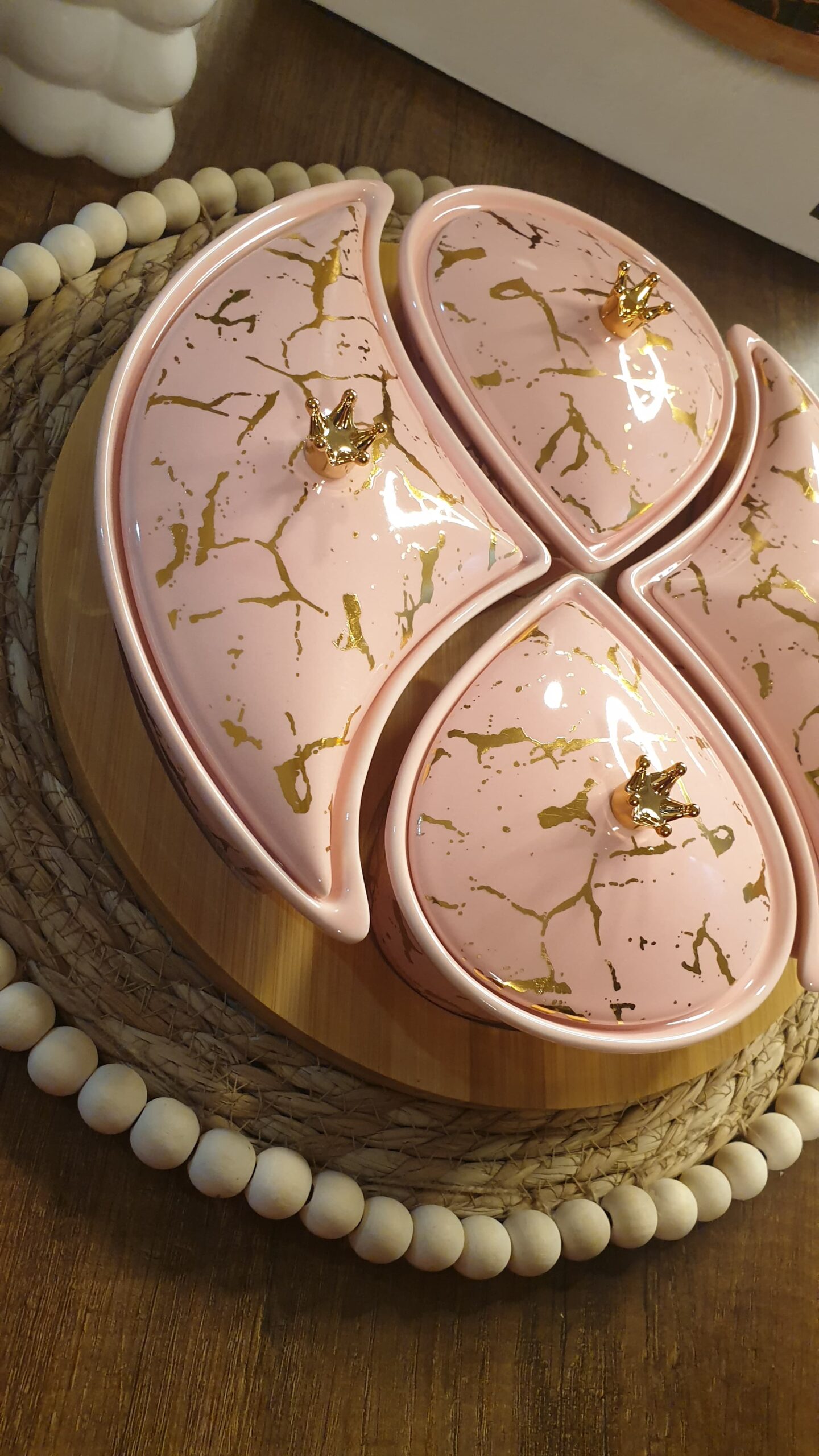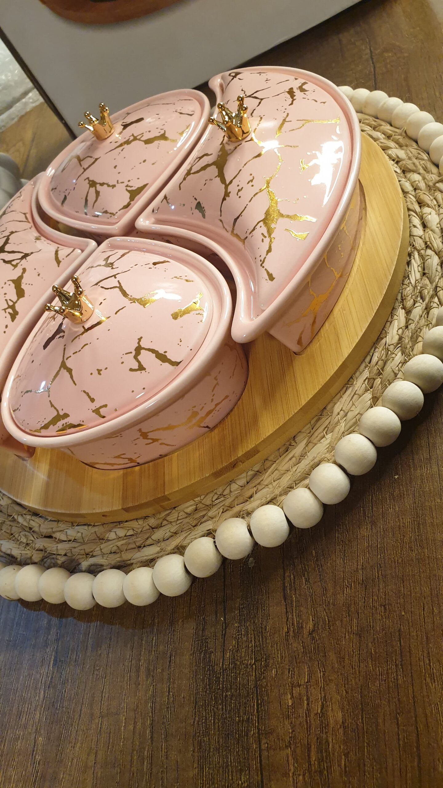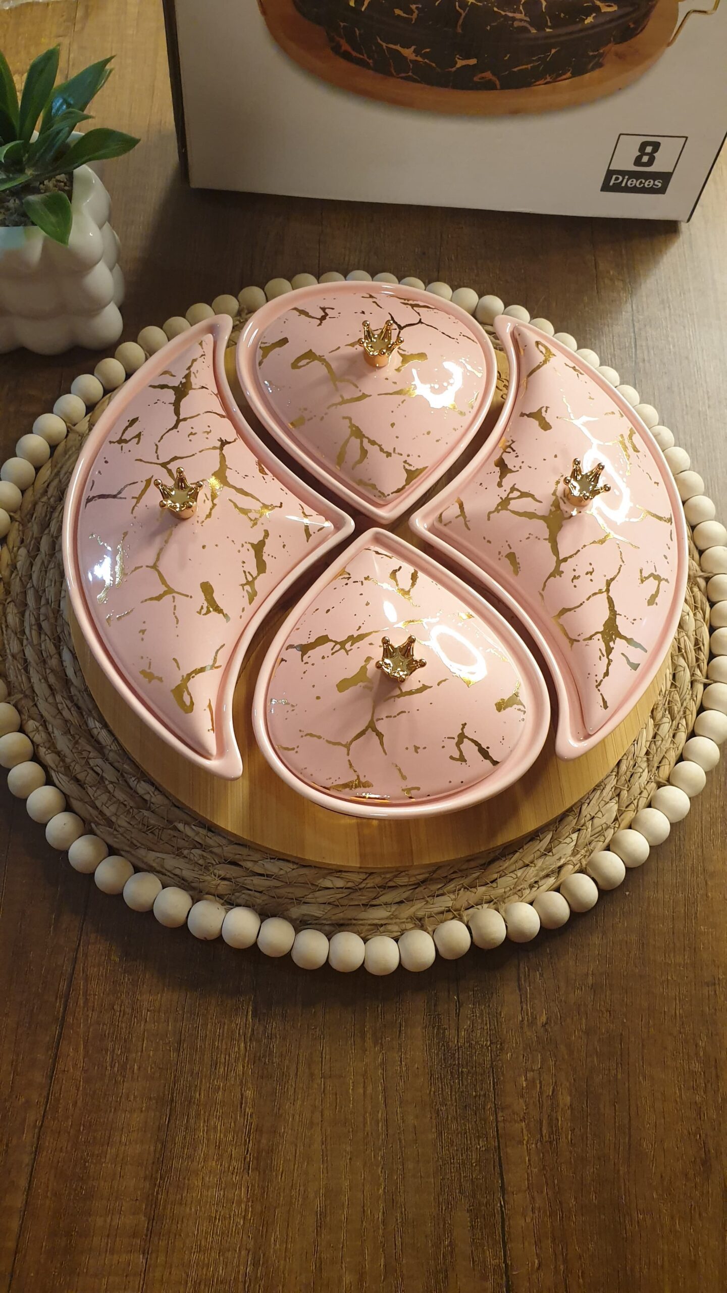 طبق مكسرات مقسمه بورسلين مميز جدا بقاعده م ٨ق الخشب