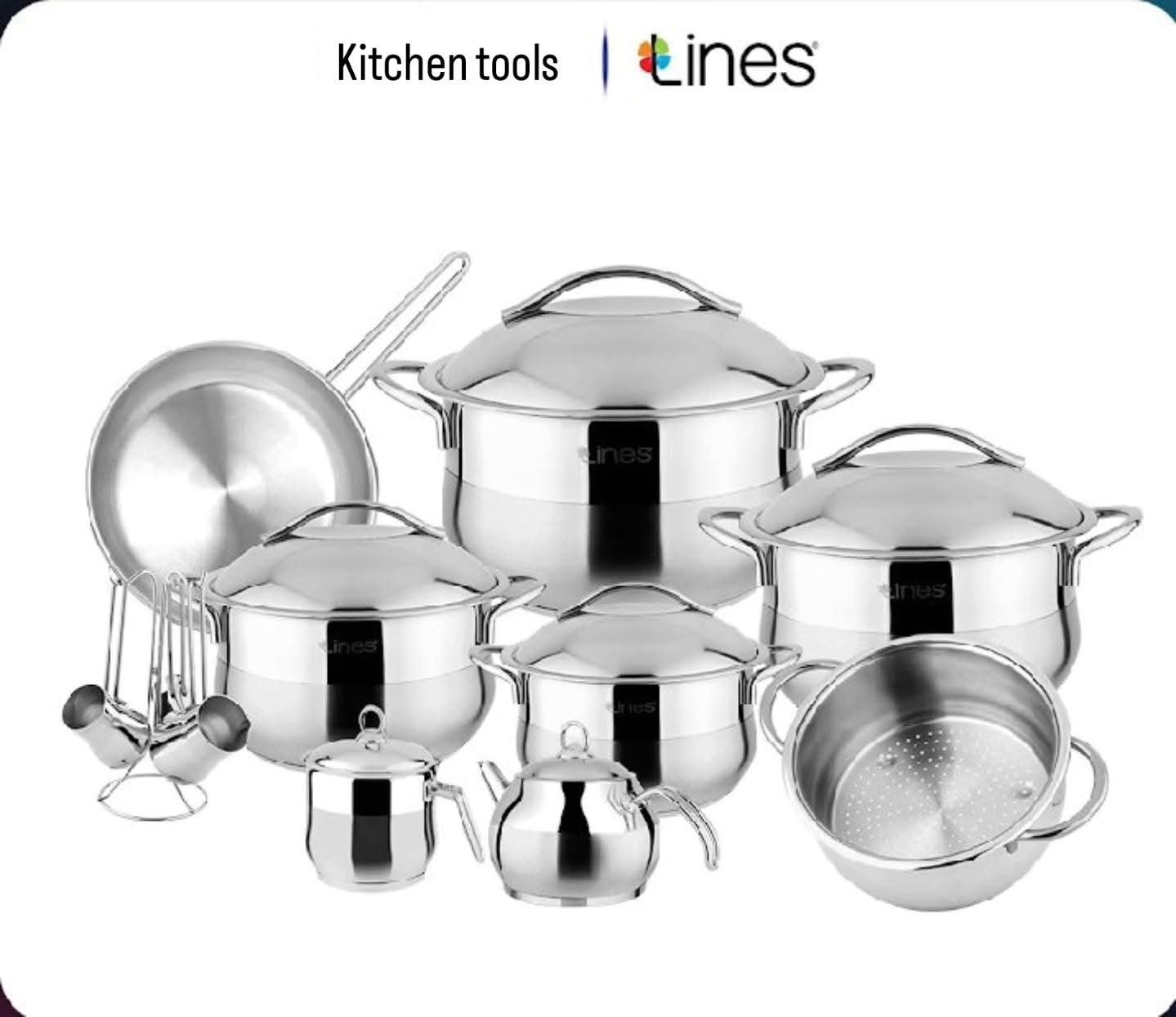 طقم حلل استانلس Lines تركى ١٨ قطعه