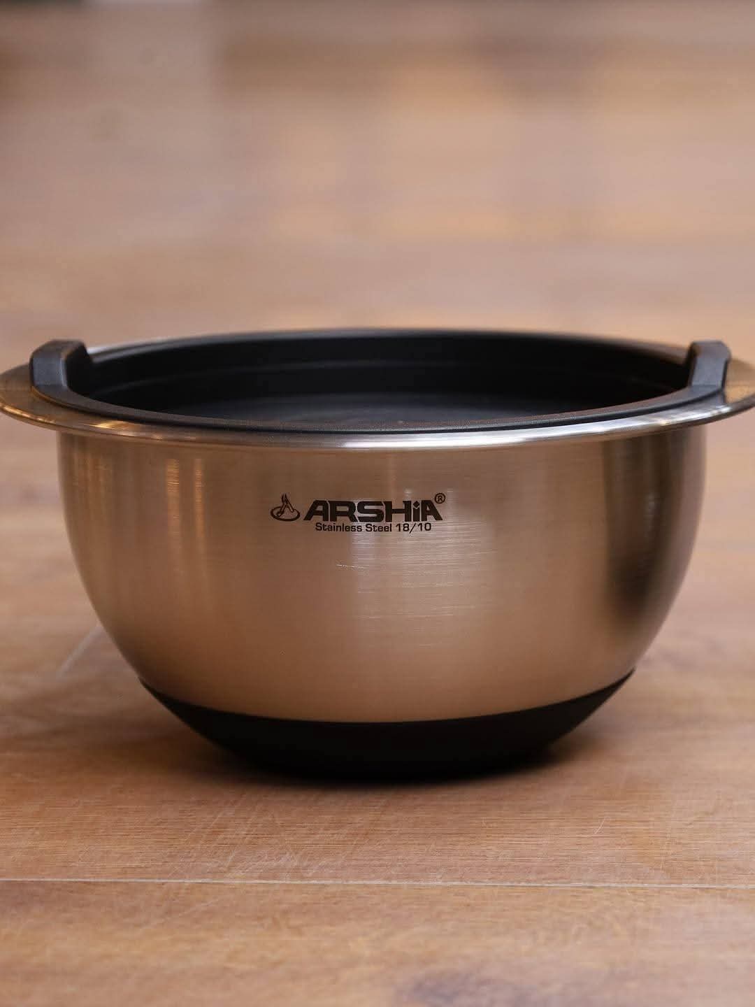 طقم حلل أستانلس Arshia  أستانلس 10/18 مقابض مقاومه للحراره قاعده بسمك ٥مم توزيع الحراره بصوره ممتازه  مظهر أنيق و جذاب