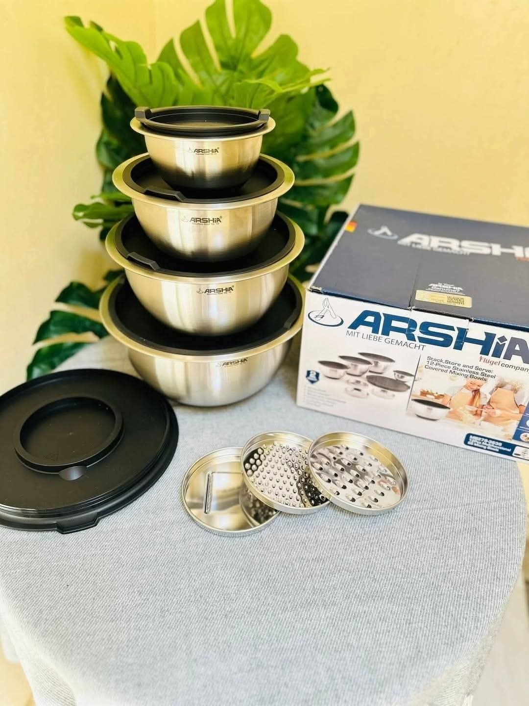 طقم استانلس Arshia م٩ق +٣ غطاء استانلس