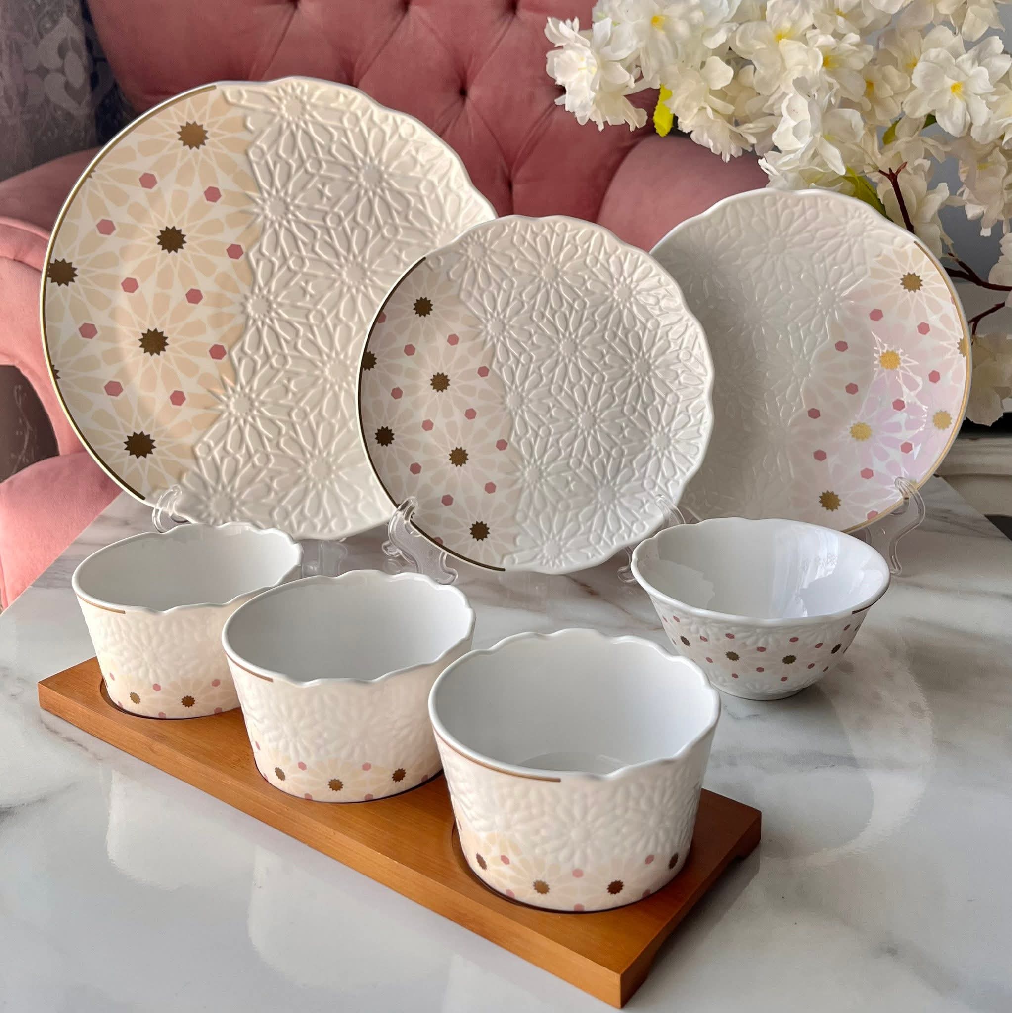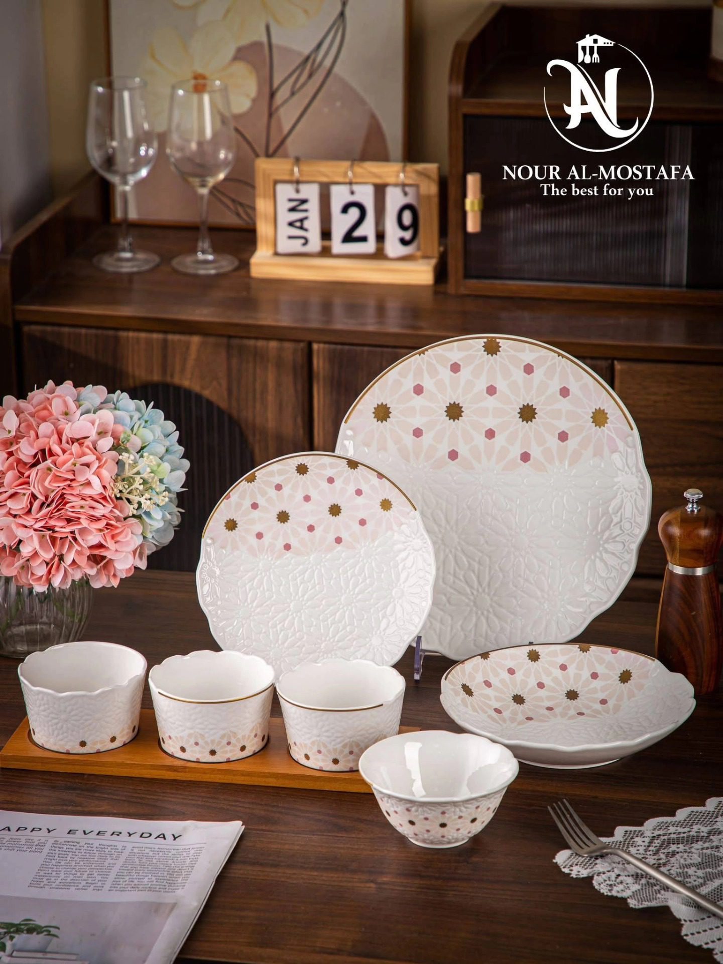 طقم عشاء ٢٨ق حراري بيدخل الفرن و الميكرويف و عملي جدا مع غسالات الاطباق بتوزيع مميز جدا مكون من : ٦طبق مسطح ك ،٦ طبق مسطح ص، ٦ بوله ، ٦ طبق عميق غرف ، ٣ طبق بوله صوص + شياله اطباق الصوص خشب ،طقم لاغني عنه ف عزومات طقم بجد يشرف اطلبيه يوصلك لباب البيت