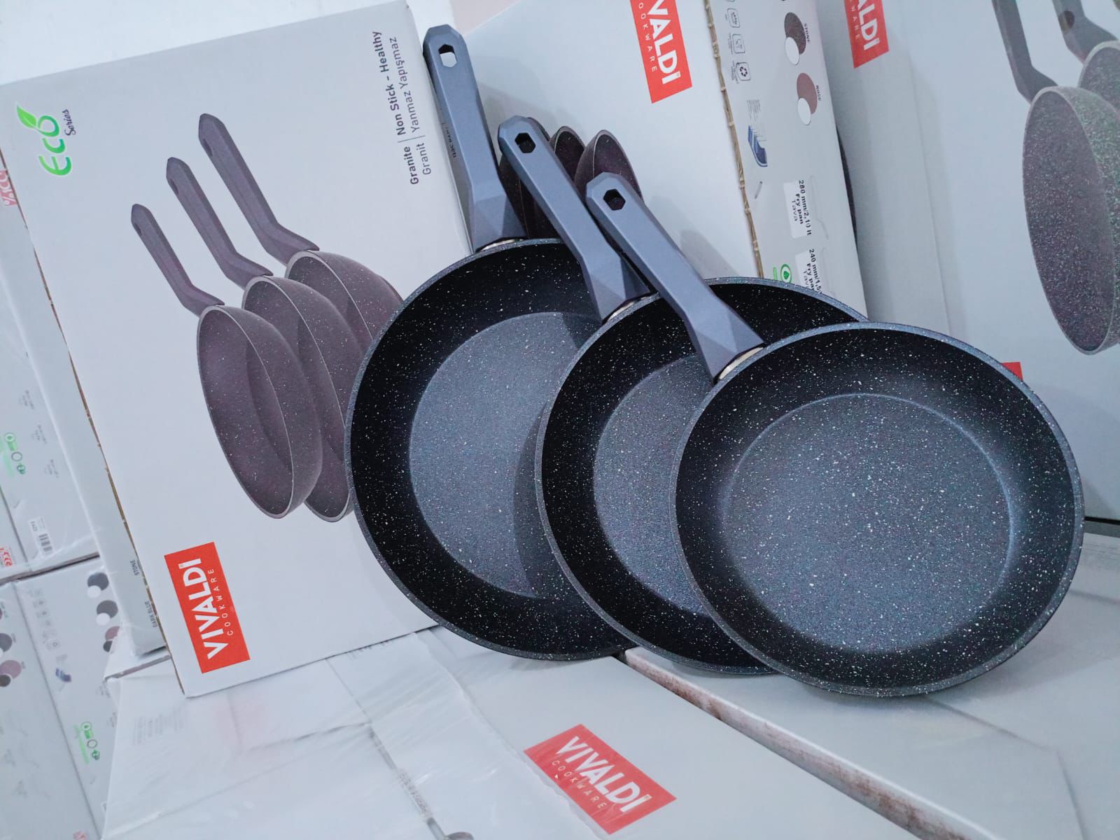 طقم مقلايا جرانيت تركي ٣ق Vivaldi مقاس (20,24,28) خامات ممتازه غير لاصقه خاليه من الكادميوم و الرصاص الضار